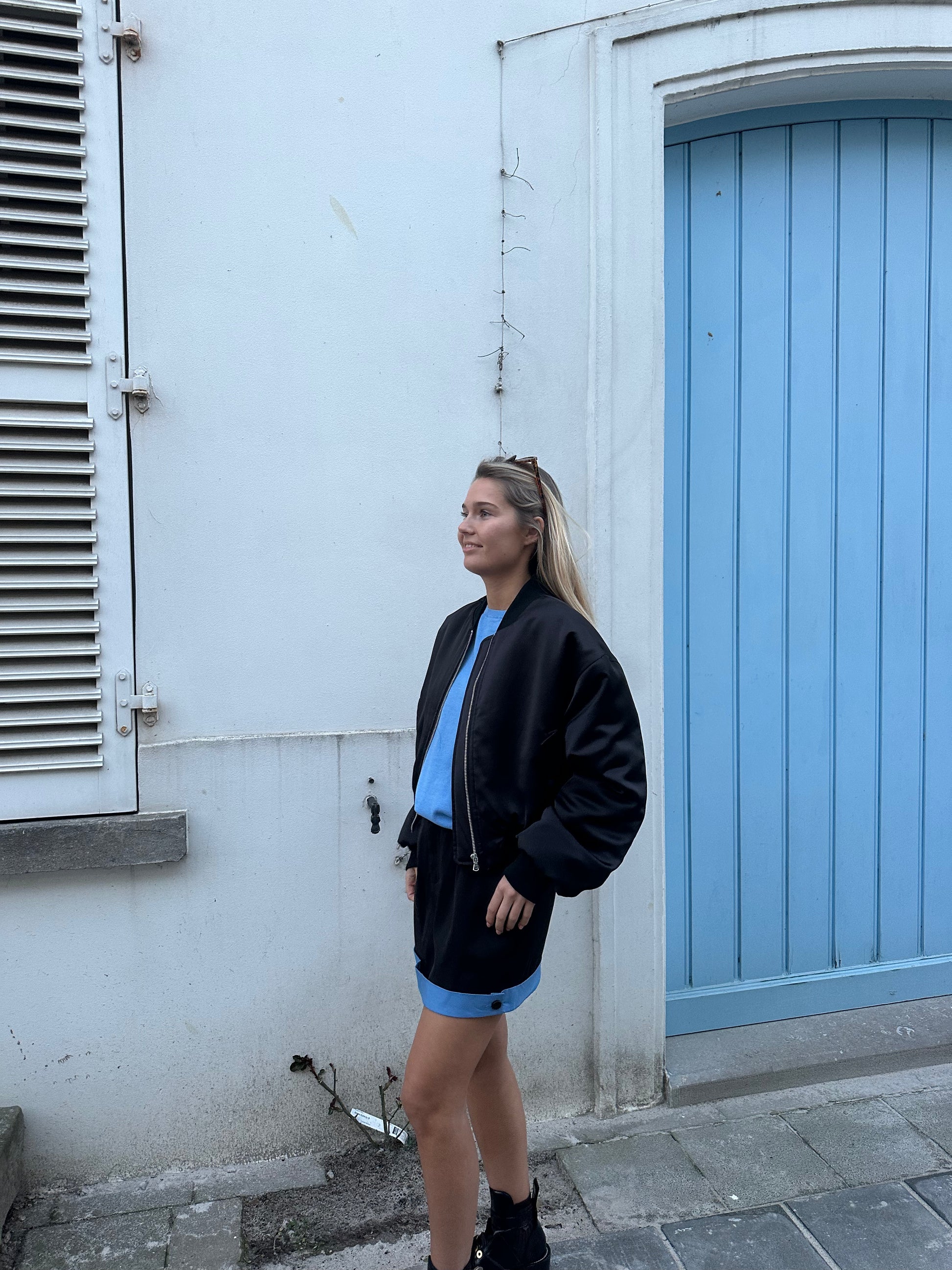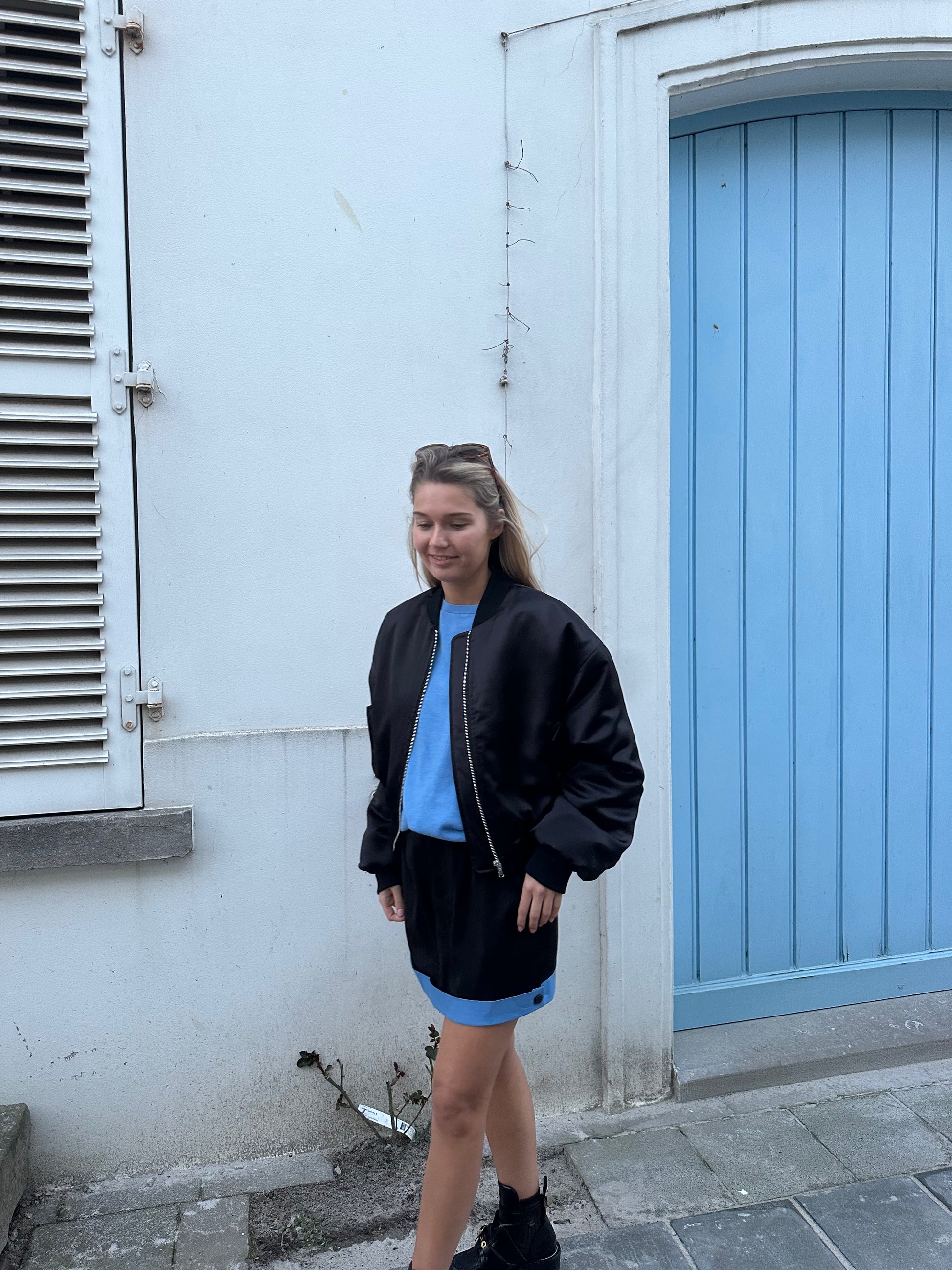 Zwarte bomber jacket.